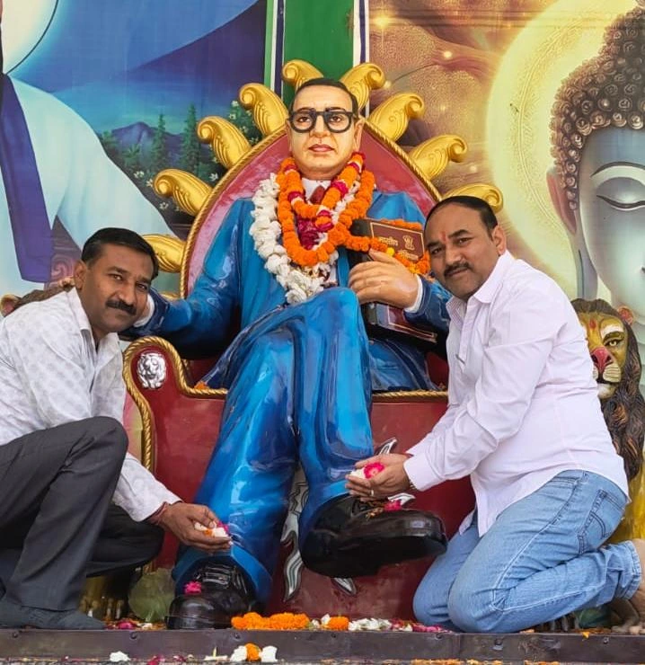 बाबा साहब अंबेडकर की प्रतिमा पर पुष्प अर्पित करतेबाबा साहब अंबेडकर की प्रतिमा पर पुष्प अर्पित करते लोग