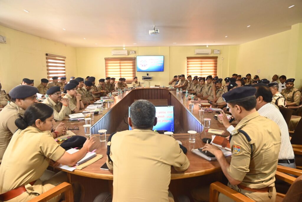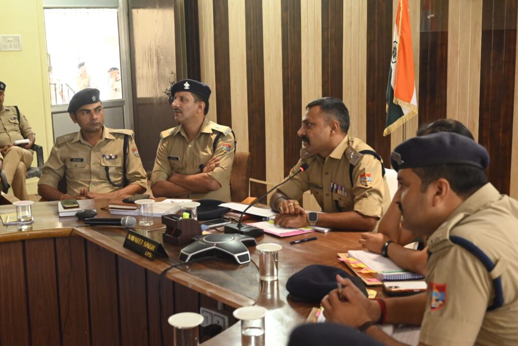हरिद्वार पुलिस कार्यालय में SSP नवनीत सिंह द्वारा अपराध गोष्ठी के दौरान अधिकारियों के साथ बैठक