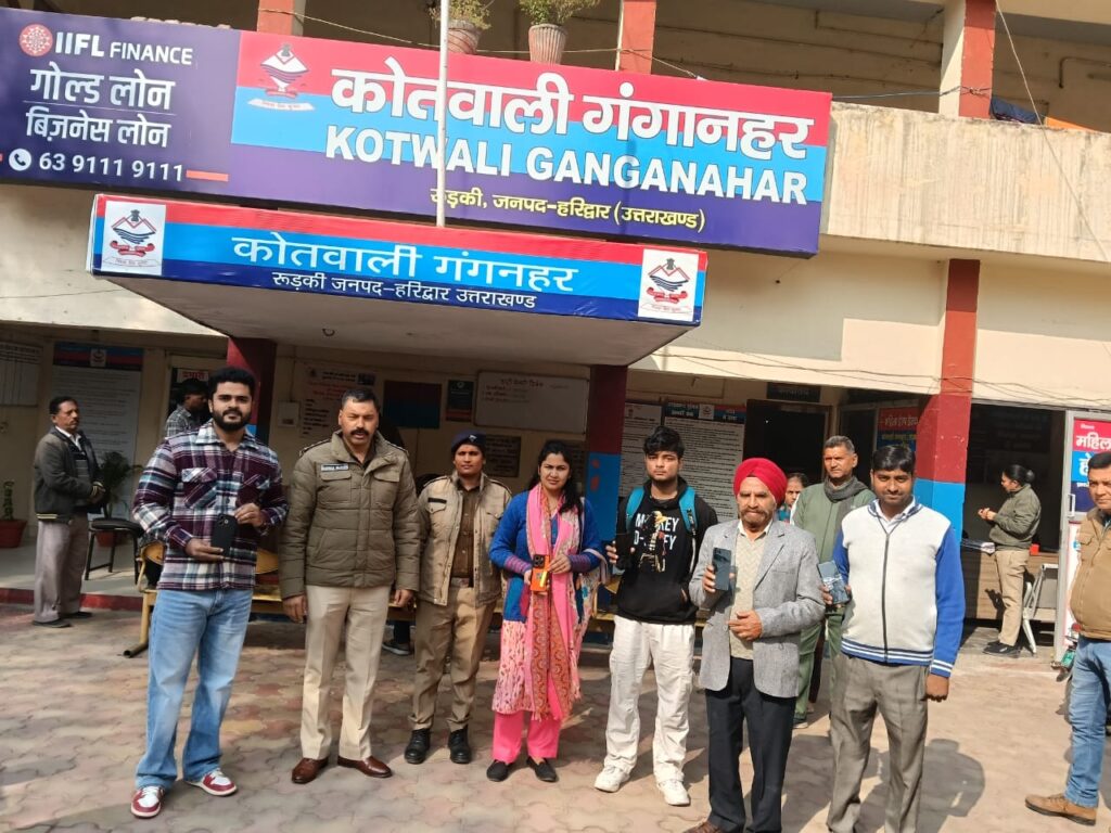 दिनांक 05 दिसंबर 2025 को वरिष्ठ पुलिस अधीक्षक हरिद्वार के निर्देश पर कोतवाली गंगनहर पुलिस को पिछले दिनों प्राप्त मोबाइल खोने की शिकायतों पर कार्रवाई तेज करने को कहा गया। पुलिस टीम ने शिकायतों की तकनीकी जांच शुरू की और CIER पोर्टल (Citizen Information and Electronics Recovery) की मदद से विभिन्न कंपनियों के मोबाइल फोन ट्रेस किए।