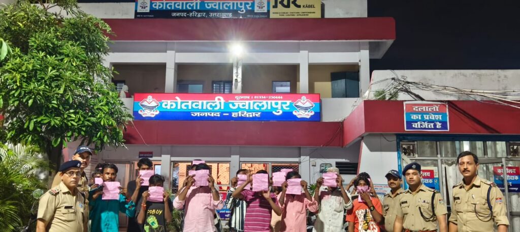 हरिद्वार, ज्वालापुर। नवरात्रि के पावन अवसर पर जहां एक ओर भक्तिमय माहौल बना हुआ है, वहीं कुछ असामाजिक तत्वों द्वारा सार्वजनिक स्थलों पर शराब पीकर हुड़दंग मचाने की घटनाएं सामने आ रही हैं। इस पर कड़ा रुख अपनाते हुए हरिद्वार पुलिस ने सोमवार को ज्वालापुर क्षेत्र में बड़ी कार्रवाई की। वरिष्ठ पुलिस अधीक्षक हरिद्वार के आदेश पर पुलिस टीम ने विशेष अभियान चलाकर ऐसे 21 व्यक्तियों को गिरफ्तार किया जो नवरात्रि के मौके पर सार्वजनिक स्थानों पर शराब पीकर शांति भंग कर रहे थे।