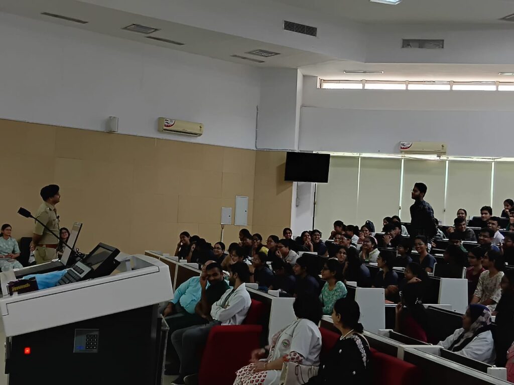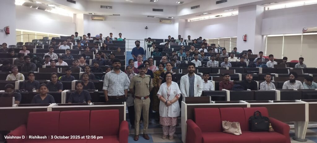 आयोजक: पुलिस अधीक्षक अपराध/यातायात जितेंद्र मेहरा (IPS)कार्यक्रम के दौरान एसपी जितेंद्र मेहरा ने एम्स के ट्रेनी डॉक्टरों और स्टाफ को विस्तार से बताया कि किस प्रकार छोटी-सी लापरवाही बड़े आर्थिक और सामाजिक नुकसान का कारण बन सकती है।