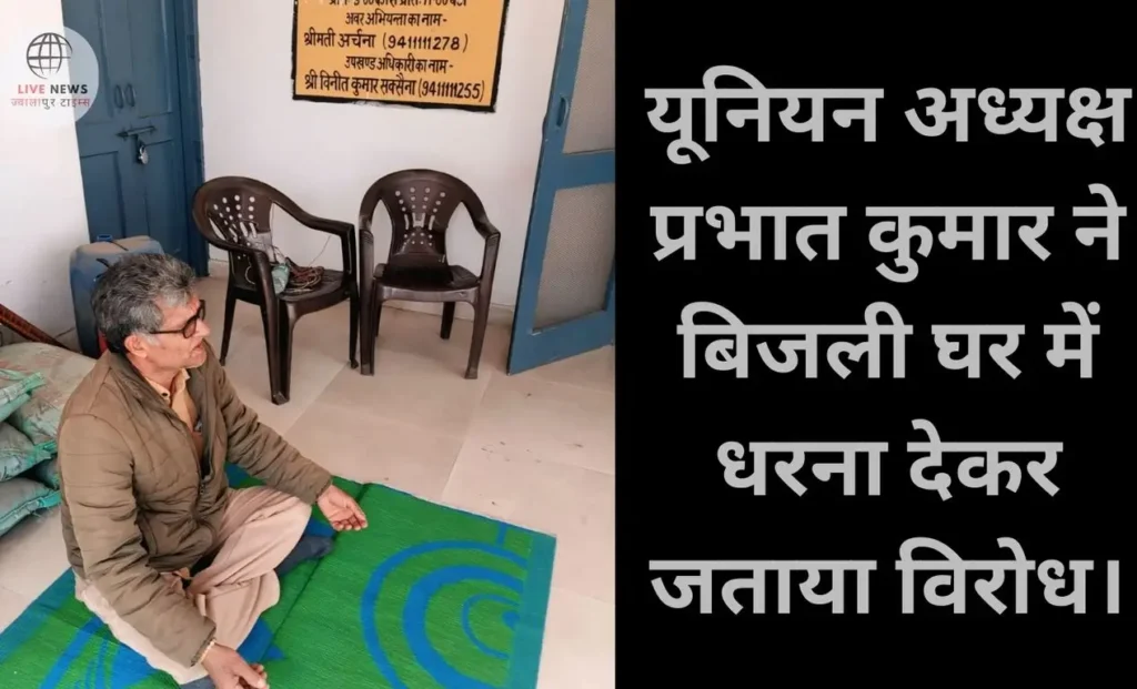 यूनियन अध्यक्ष प्रभात कुमार ने बिजली घर में धरना देकर जताया विरोध।