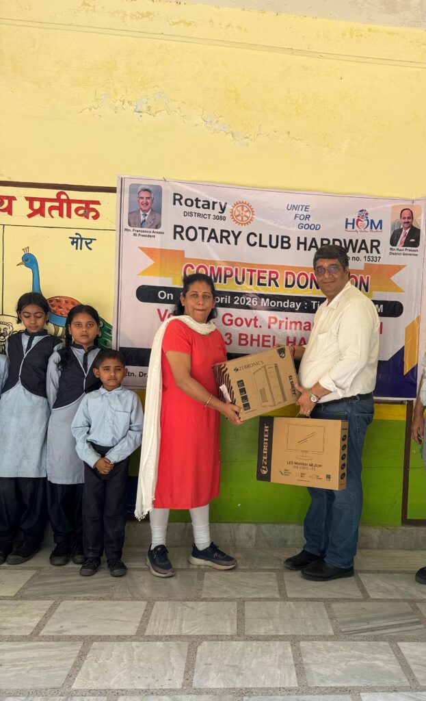 हरिद्वार, 27 अप्रैल 2026 शिक्षा के क्षेत्र में डिजिटल सशक्तिकरण की दिशा में एक सराहनीय पहल करते हुए रोटरी हरिद्वार ने राजकीय प्राथमिक विद्यालय, सेक्टर-3, बीएचईएल हरिद्वार को एक कंप्यूटर भेंट किया। इस पहल का उद्देश्य विद्यार्थियों को आधुनिक शिक्षा से जोड़ना और डिजिटल युग के अनुरूप उनकी सीखने की क्षमता को बढ़ावा देना है।
